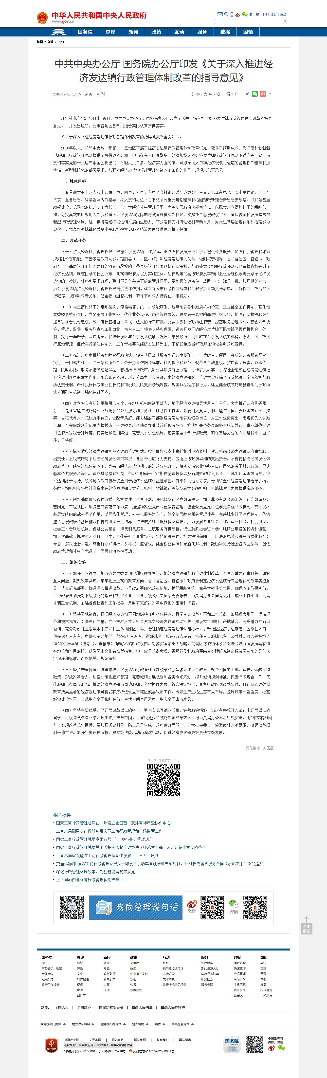 《關(guān)于深入推進(jìn)經(jīng)濟(jì)發(fā)達(dá)鎮(zhèn)行政管理體制改革的指導(dǎo)意見》